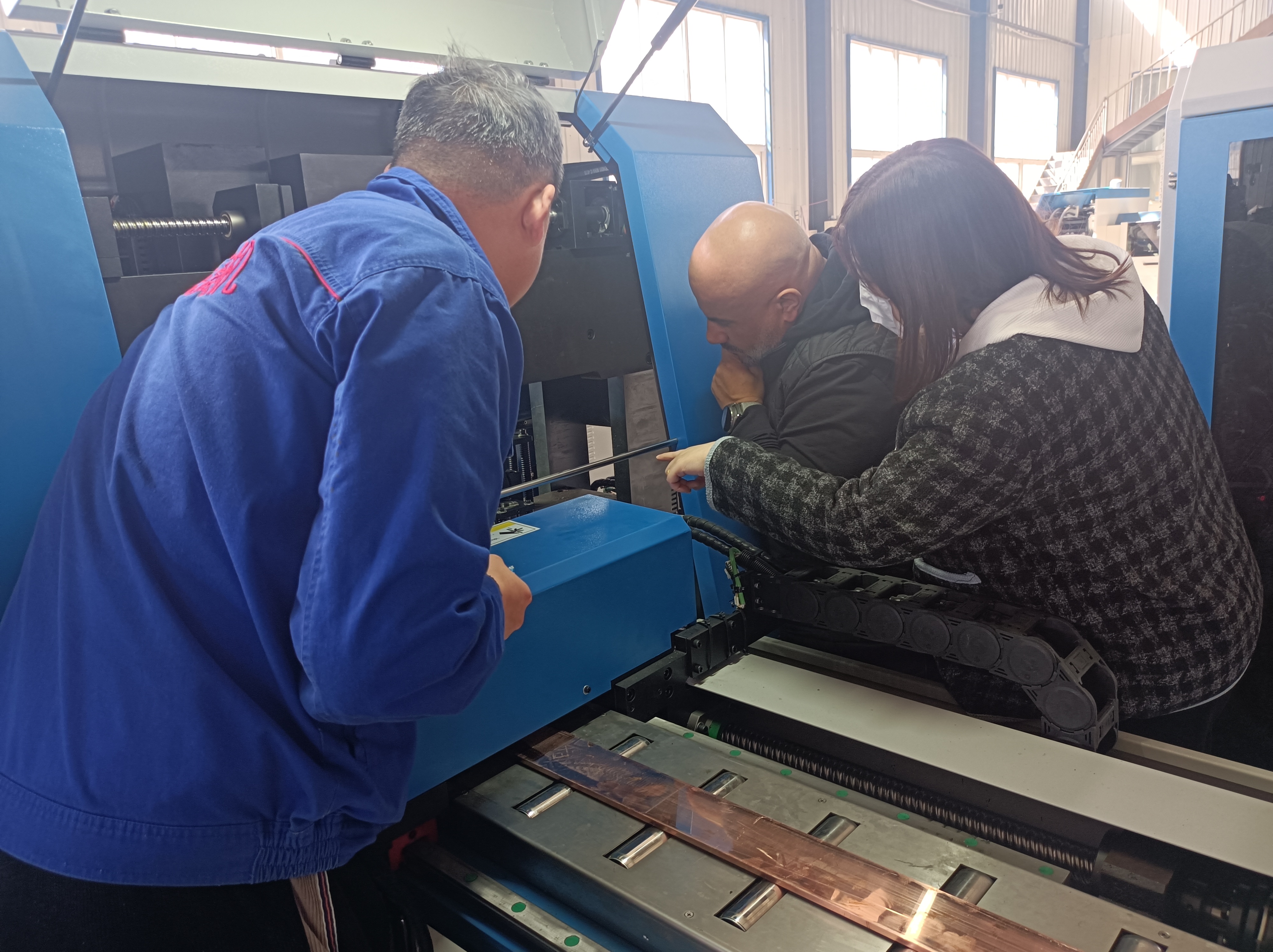 Middle East vatengi mukuita kwekushanya uku, tarisa pakunzwisisa kwakakodzera kuita kweCNC busbar punching uye yekuveura muchina, iyo huru yekumisikidza uye paramita, asi zvakare wedzera kunzwisisa zvakanakiraCNC busbar punching uye yekuveura muchinauyeCNC bhasibha yekubhenda muchina, uye zvigadzirwa zviviri pamwe chete zvinoratidza chido chakasimba chekutenga. Nekuedza kwakabatana kwaLi naInjiniya Liu, vatengi veMiddle East naManeja Zhao vasvika pachinangwa chekubatana nekambani yedu. Mukuita kushanya uku, Shandong Gaoji busbar processing machine, neveMiddle East vatengi uye maneja Zhao vakarumbidza zvikuru, mukushanya kuti vanzwisise, vatengi veMiddle East mukunzwa kuunzwa kwemhando yemidziyo yekambani yebhasibar, kukudzwa uye akasiyana ma paramita, kune yedu yakajairika zvigunwe kumusoro.